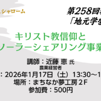 キリスト教信仰とソーラーシェアリング事業 講 師:近藤 恵 氏(農業経営者) 日 時:2026年1月17日(土)13:30~15:00 場 所:まちなか夢工房 2F(〒960-8035 福島県福島市本町5-31) 参加費 …