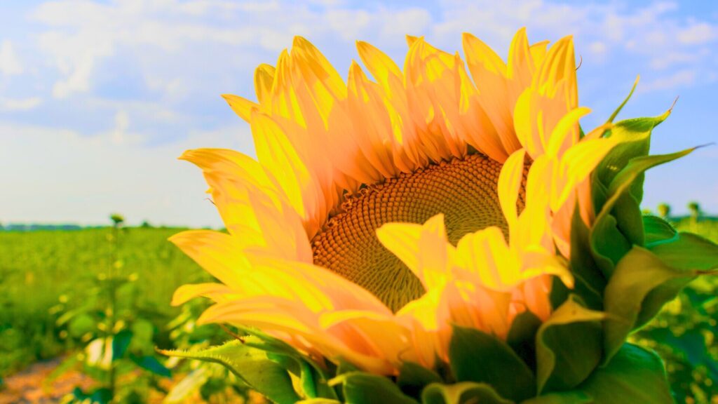 生命力を感じさせる黄色い花、ひまわりはまさに太陽の象徴として信仰されていました。実用的でありながら、畏敬の念を持たれる花。あまたの植物の中でも、そのような花はめったにないでしょう。
